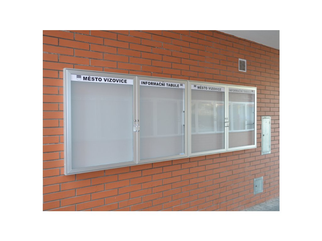 Možnost vybavení nápisem např. "úřední deska", znakem nebo názvem města, obce, instituce.