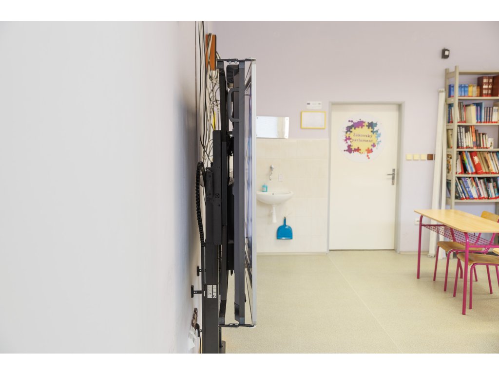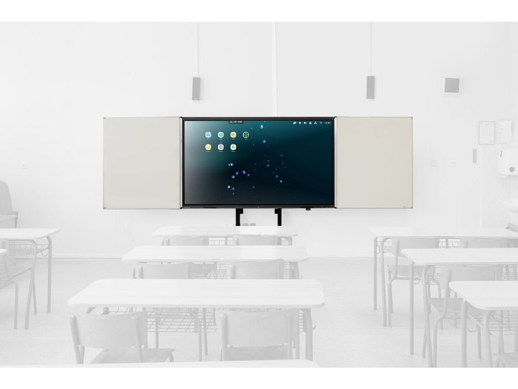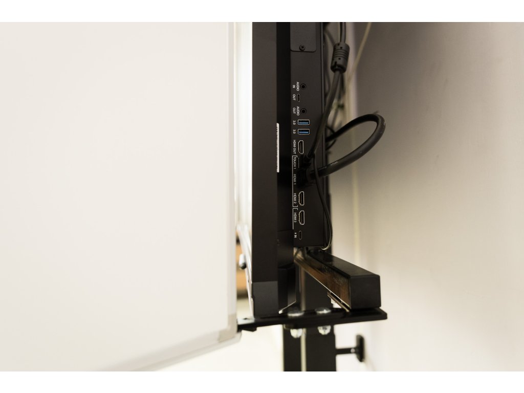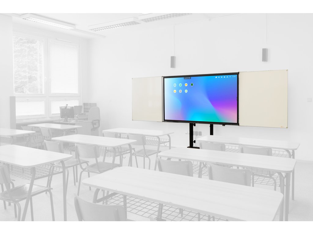 Umožňuje flexibilní montáž - ideální do každé učebny. Zajišťuje bezpečnou a stabilní instalaci interaktivních displejů až do velikosti 110". Díky kombinaci montáže na stěnu i podlahu je ideální pro místa s různými typy zdí. Stojan je vybaven tichým elektromotorem, ergonomické ovládání pomocí tlačítka nebo dálkového systému. Skryté vedení kabeláže podporuje profesionální a bezpečné prostředí.