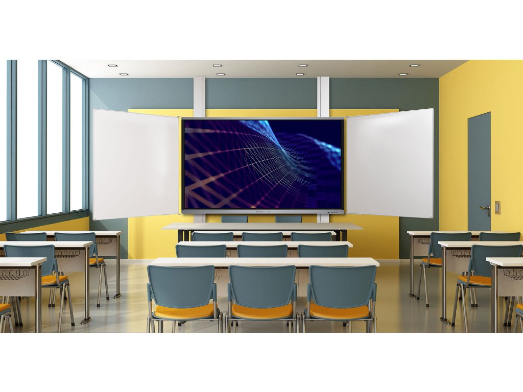 Ta nejlepší volba pro Vaši třídu. Pro tuto sestavu byly použity pouze ty nejkvalitnější komponenty, používání je proto velice jednoduché a bez starostí. Displej ve velikosti 75" nebo 86" (výběr displeje necháme pouze na vás) je obsazen keramickými křídly té nejvyšší kvality. Jsou magnetická a jejich povrch je vypalován při teplotě přes 800C. Na povrch křídel se vztahuje záruka 25 let. Design křídel je minimalistický, křídla jsou lemovány hliníkovým rámem s eloxovanou povrchovou úpravou. Křídla jsou bezúdržbové a nemusíte se o nic starat.