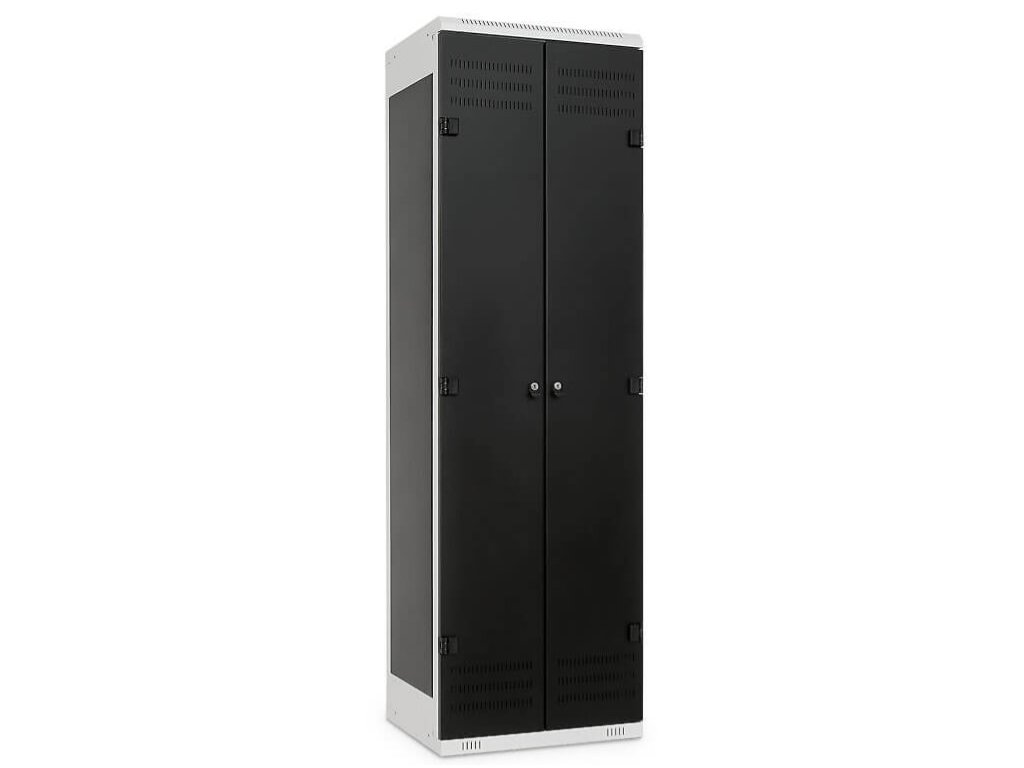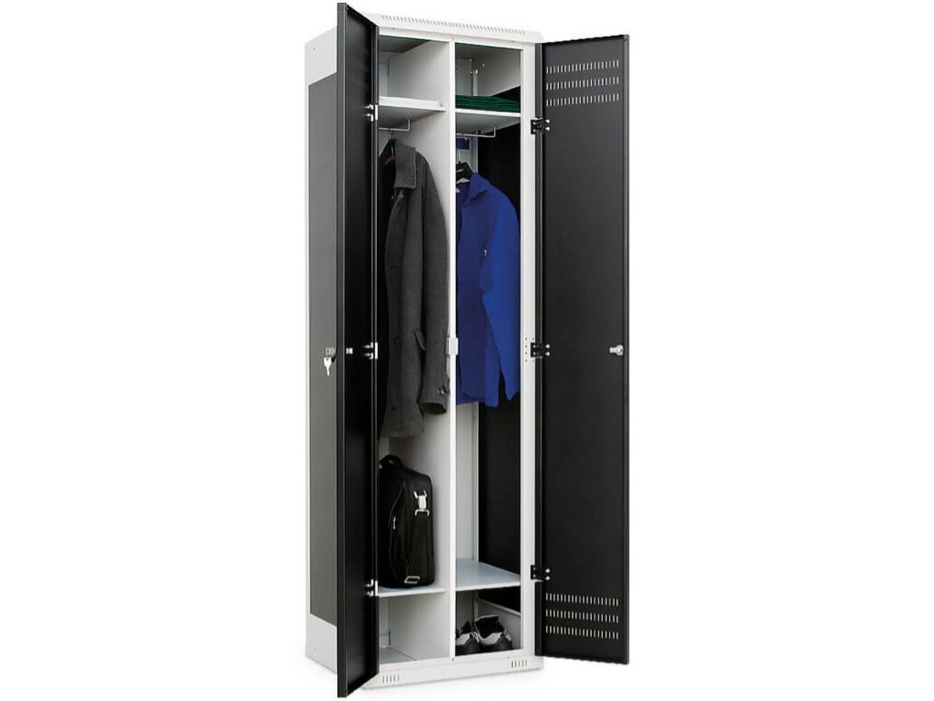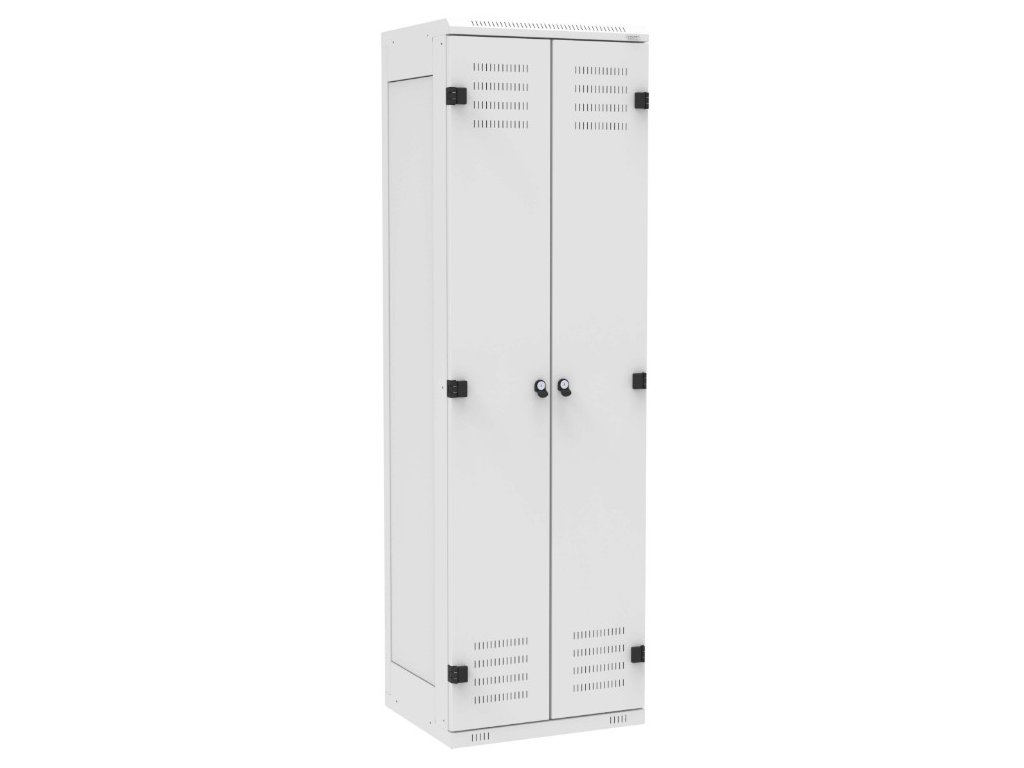 Tuto skříňku je možné vybrat v různých barvách a také rozměrech. Základní paleta barev je v RAL odstínech šedá, modrá a černá. Další barevné kombinace je možné na základě individuální poptávky. Tuhá rámová konstrukce zajišťuje pevnost a stabilitu každé skříňky. Vyztužené dveře lze díky unikátnímu systému pantů otevřít pod úhlem téměř 180°. Každá skříňka je vybavena policí v horní a dolní části a šatní tyčí. Perforace ve dveřích a kovové konstrukci zaručují dostatečné odvětrávání. Svařovaný korpus z ocelového plechu tl. 0,8 až 1 mm zaručuje vysokou tuhost a minimalizuje náročnost na montáž. Nivelační nožičky jsou součástí každé dodávky. Skříň je nutno umístit na rovné podlaze, případně dorovnat pomocí nivelačních nožiček. Pro zajištění 100% stability doporučujeme ukotvit ke stěně. Všechny materiály jsou vyrobeny z recyklovatelných materiálů.