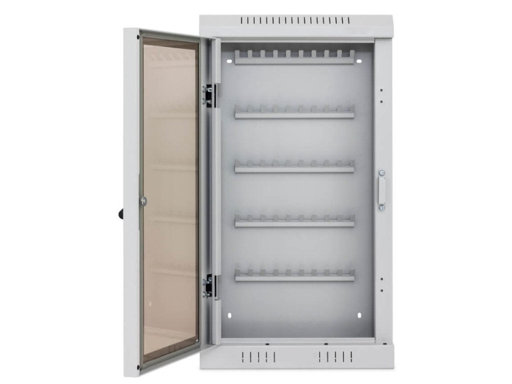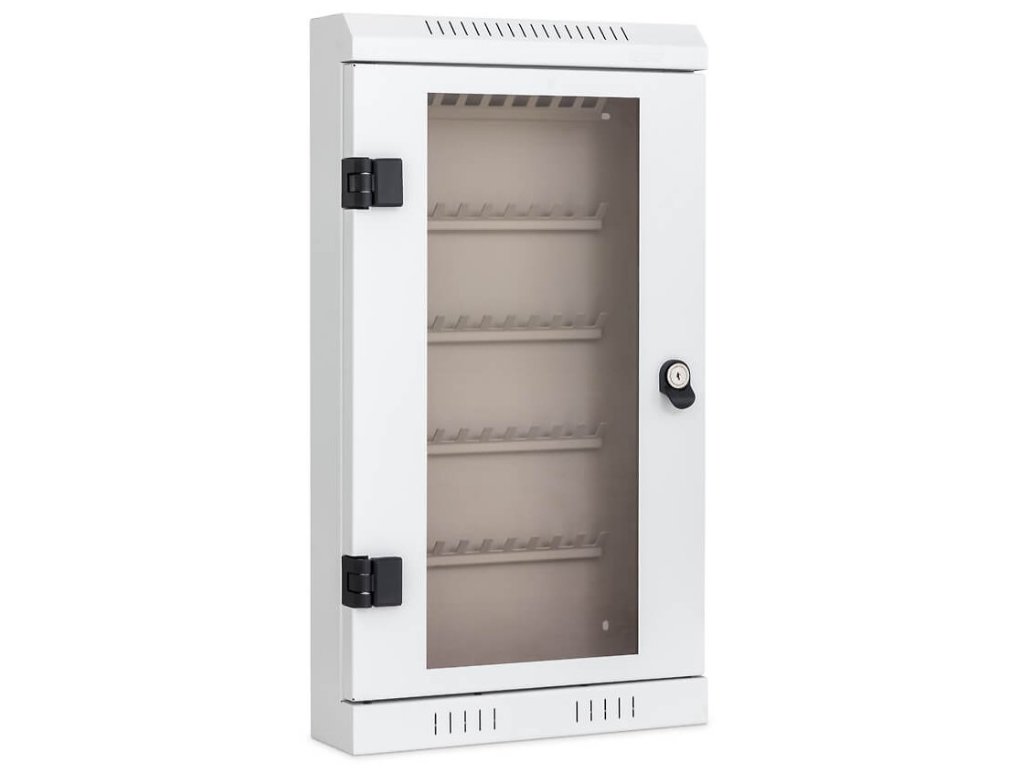 Skříňky jsou vyrobeny z ocelového plechu, se skleněnými dvířkami, které zaručují dokonalý přehled o klíčích. Bezpečnost skříněk je zajištěno pomocí cylindrického zámku. Unikátní panty umožní otevírání dvířek pod úhlem téměř 180°. Skříňky lze snadno a bez námahy připevnit na zeď. Ocelový plech je chráněn lakovaným práškem, který je odolný vůči oděrkám, poškrábání, UV záření, čímž je zaručena dlouhá životnost. Perforace na plechové konstrukci zaručuje účinné odvětrávání.
