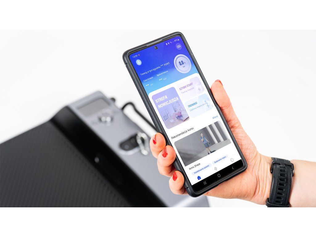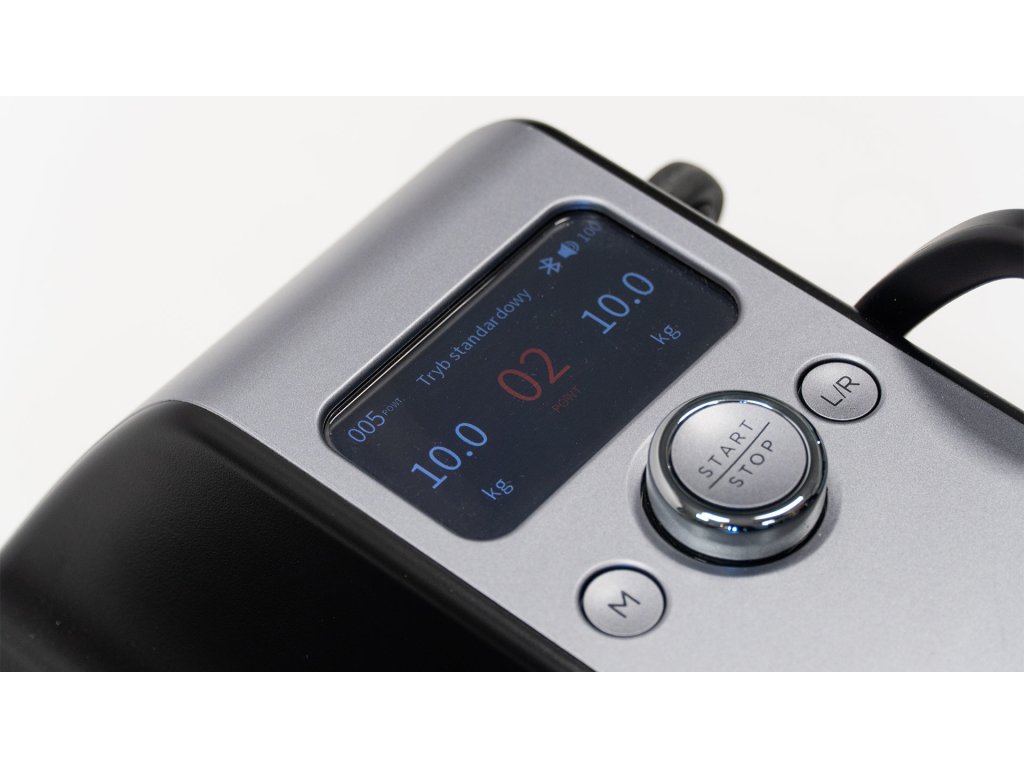 Zařízení využívá kvalitní displej, který zobrazuje informace o provedeném cviku v danou chvíli: zvolenou zátěž, pracovní režim a počet provedených opakování. Tlačítka pro změnu režimu a knoflík ovládacího panelu umístěný na těle přístroje umožňují provádět trénink bez nutnosti připojení k mobilní aplikaci.
