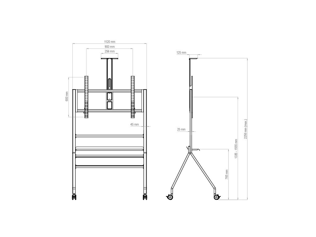 Výhodou tohoto stojanu je praktický design s volbou umístění kamkoliv si budete přát. Do zasedací místnosti, výstavy, nebo třeba do třídy. Možnost velikosti displeje je až do 86". Obrazovka je určena k montáži na šířku.