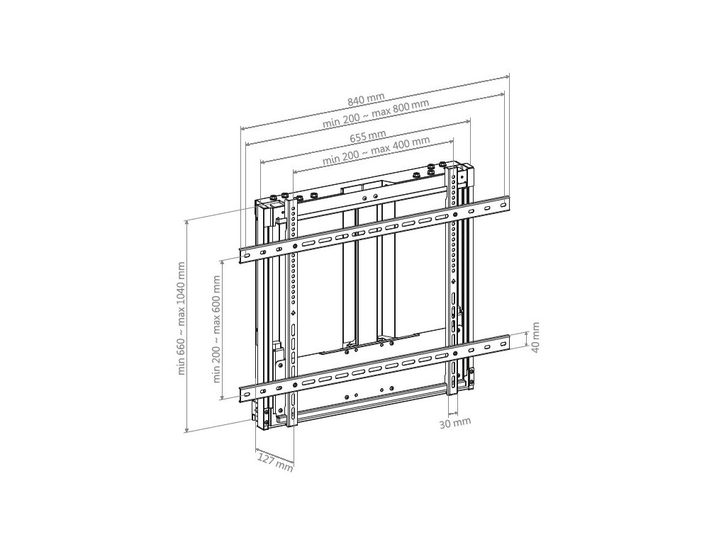 Držák je konstruován pro úhlopříčky obrazovky mezi 55" a 75" | 140 - 191 cm a váhou mezi 40 a 60 kg.