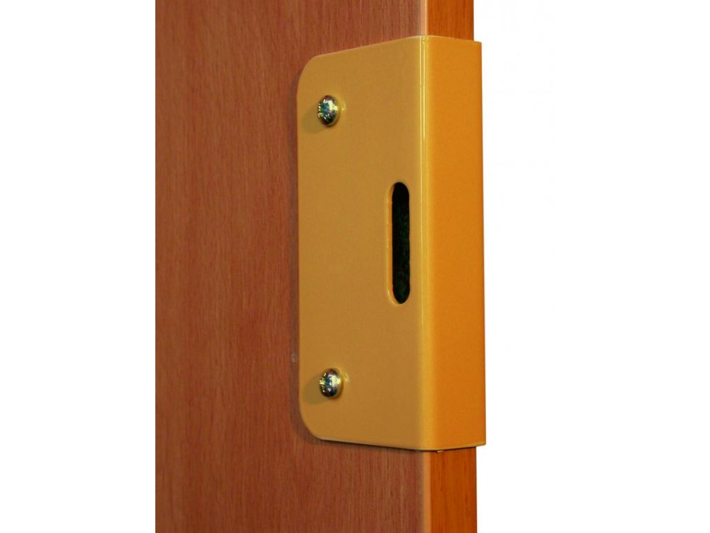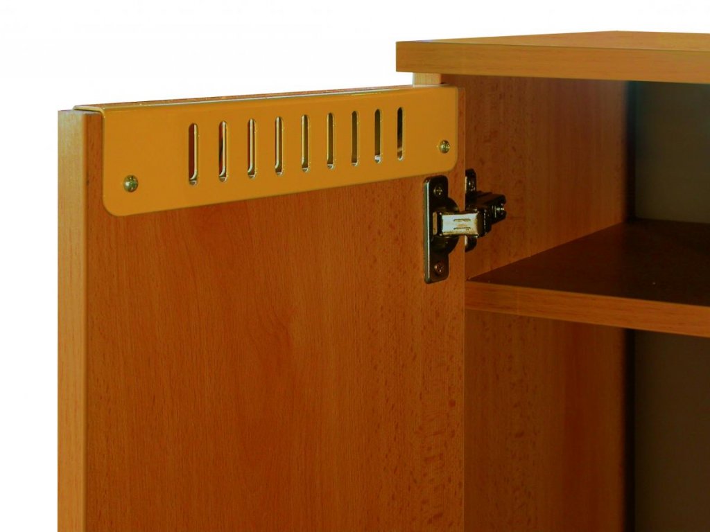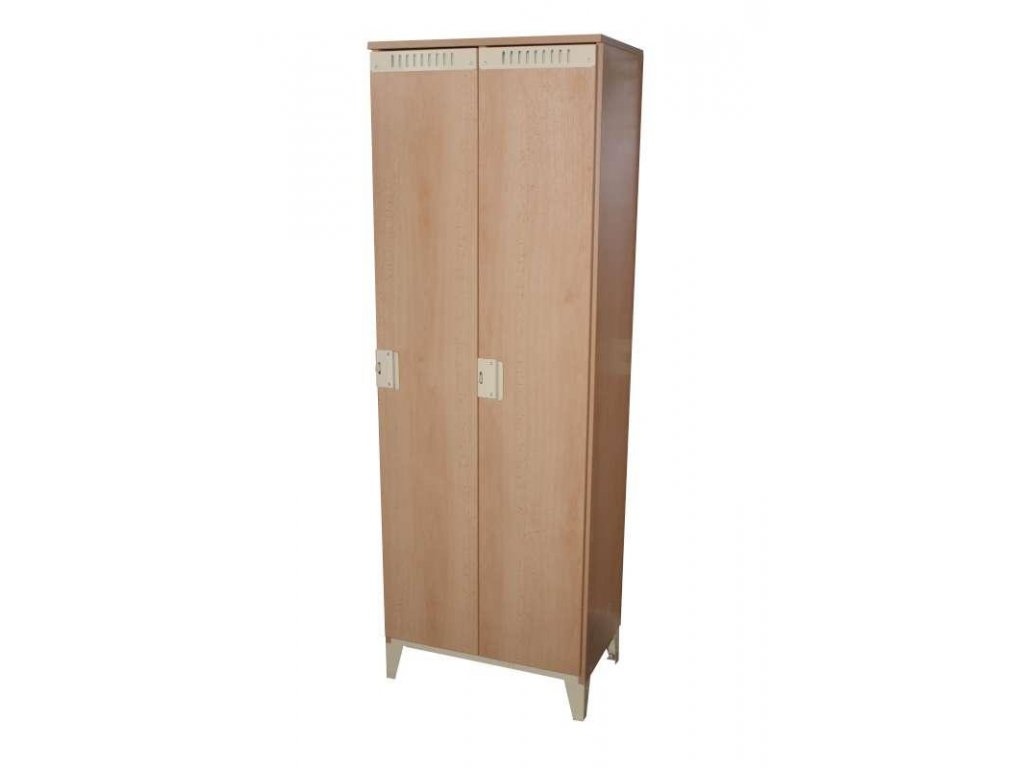 Šatní skříňka je rozdělena na 2 oddíly, z nichž každý má samostatná dvířka. Ta jsou standardně pravá (panty vpravo, zamykání vlevo), lze však zvolit i dvířka levá. Jejich součástí je vždy ventilační mřížka, umožňující odvětrávání skříně a visací zámek (jsou opatřena kováním) nebo nábytkový zámek se dvěma klíči, doplněný úchytkou ve stříbrné barvě, zajišťující uzamykatelnost. Konstrukce a typ kování navíc zaručují dostatečné zabezpečení vůči vylomení dveří.