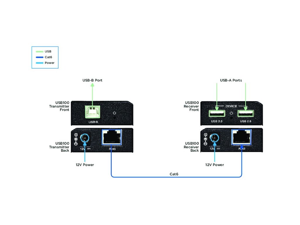 Praktický expander, který umožňuje přenášet USB 2.0signál na vzdálenost 50 m nebo 100 m ( musíte zvolit variantu) pomocí běžného síťového kabelu Cat6. Jsou podporovány všechny typy přenosu USB (hromadný, řídící, přerušovací a izochronní) až do rychlosti 480 Mb/s (50 m) a 170 Mb/s (100 m). Jsou podporována všechna zařízení HID, jako jsou klávesnice/myši, a také úložná zařízení, USB kamery a audio streamy. Je ideální tam, kde je potřeba propojit USB zařízení s počítačem na delší vzdálenost, než umožňuje standardní USB kabel. Využití má především ve školách, konferenčních místnostech, firemní prezentacích a AV systémech (propojení PC a interaktivní tabule/displeje).