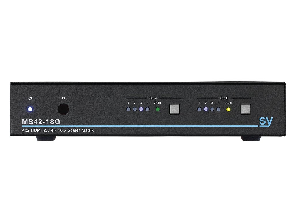 Vestavěný scaler - upraví rozlišení a obnovovací frekvenci pro každý výstup zvlášť.