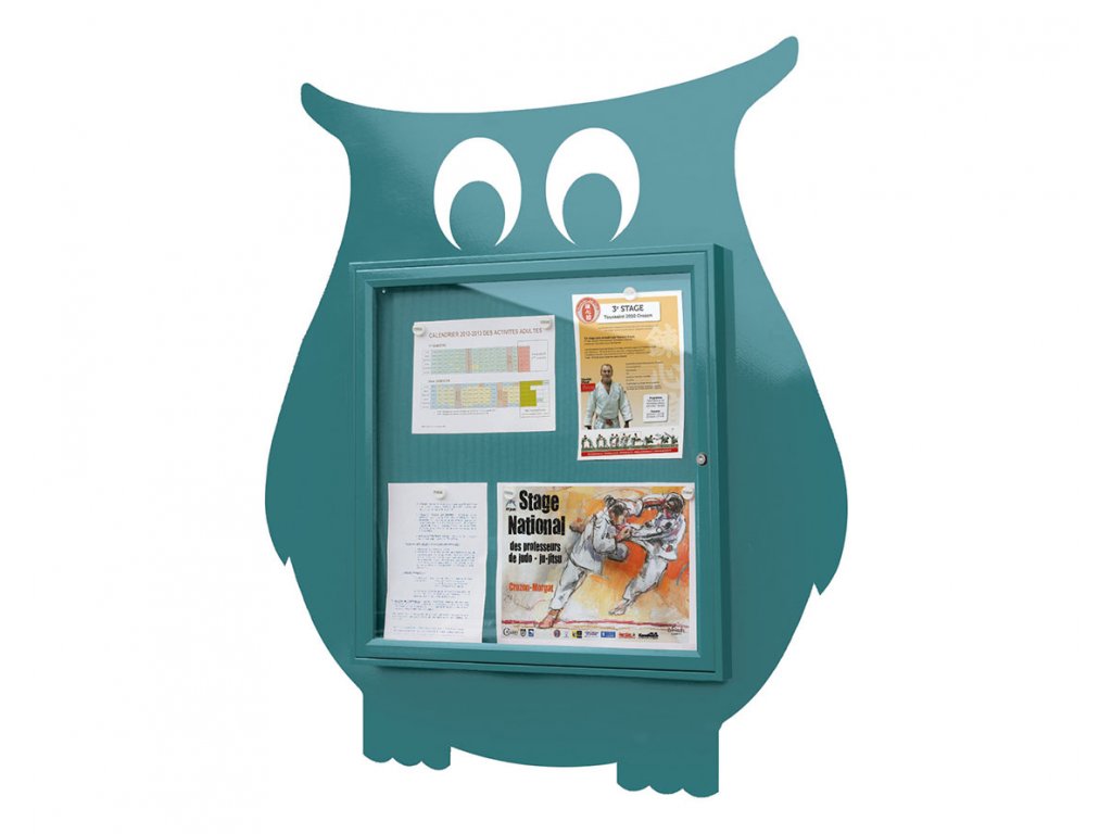 Krásná vitrína ve tvaru sovičky. Ozdobte svou mateřskou nebo základní školu touto barevnou vitrínou ve tvaru sovičky, rozzáříte tak prostředí, ve kterém děti tráví svoje dětství. Vitrína je vodotěšná, takže ji lze umístit jak ven tak i dovnitř. Do vitríny se vleze šest papírů ve formátu A4 a jednokřídlá dvířka lze zamknout bezpečnostním zámkem.