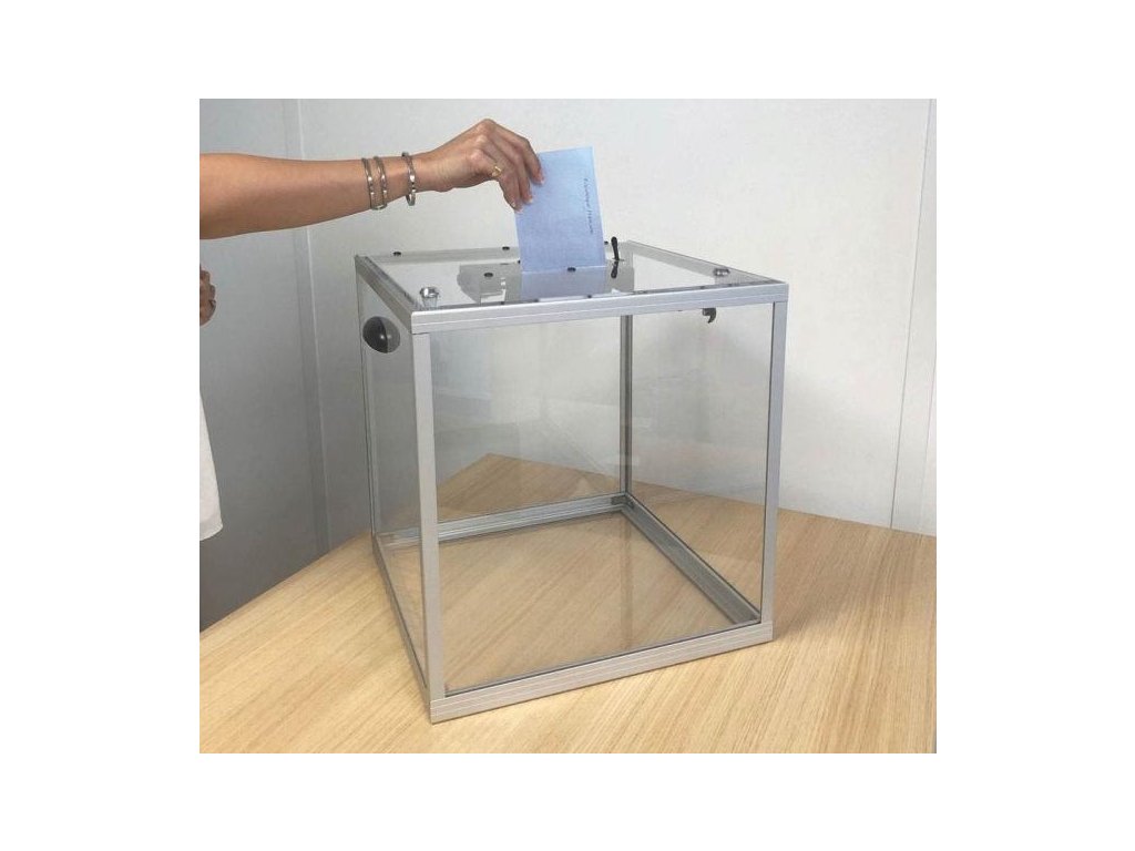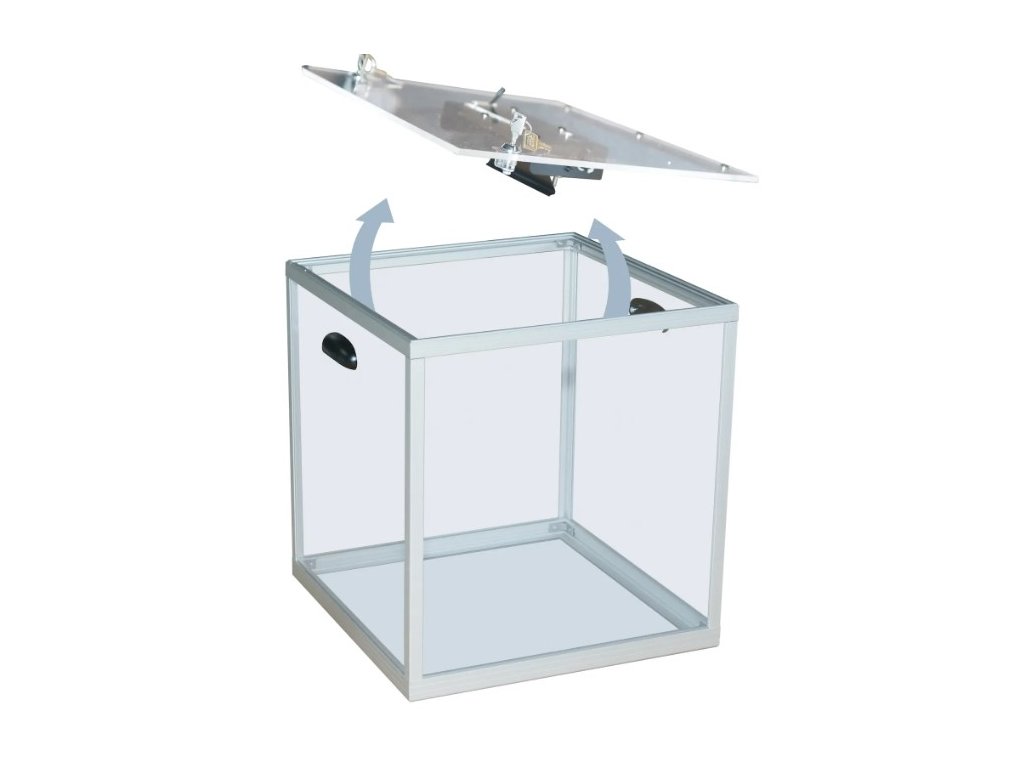 Uzamykatelná urna má dva vestavěné zámky s různými klíči, umístěnými ve víku. Pro snadnou manipulaci je urna vybavena dvěma bočními úchyty. Víko lze snadně sundat a vyprázdnit urnu při sčítání hlasů. Mechanické počítadlo s bezpečnostní krytkou je vynulováno tlačítkem po sejmutí víka. Šířka otvoru pro lístky je 11,5 cm - obálka A6. Konstrukce je z eloxovaného hliníku a průhledné stěny urny jsou z plexiskla.