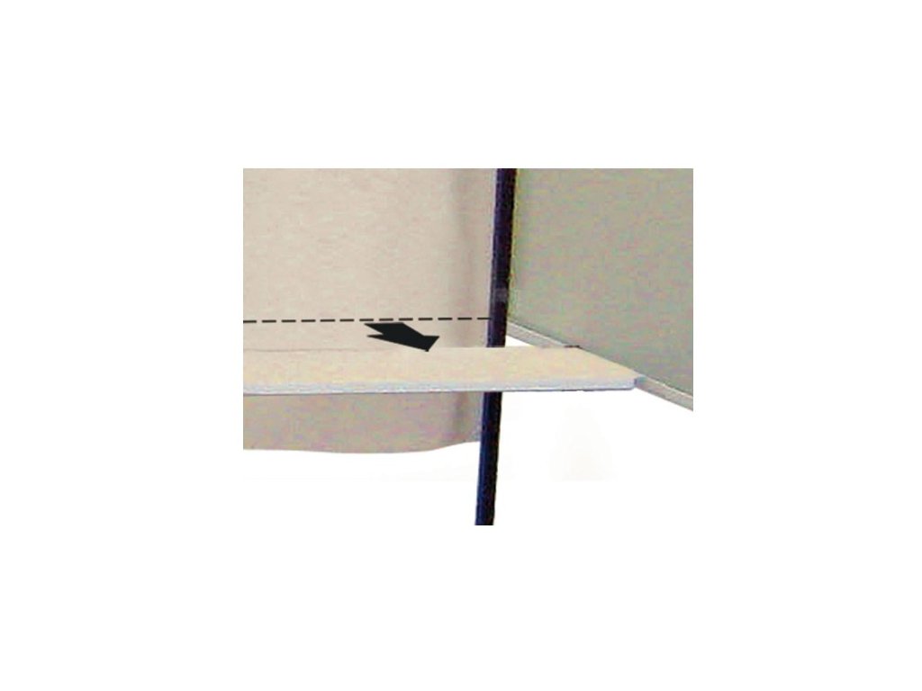 Každá volební zástěna je vybavena policí na psaní, která je výškově nastavitelná. Uskladnění je velice praktické, plentu lze složit na poloviční výšku a uskladnit v kartonové krabici. Pro větší bezpečnost zástěna nemá prach. Plenta je z neprůsvitné a hrubé bavlny s požární klasifikací M1 - nehořlavá.