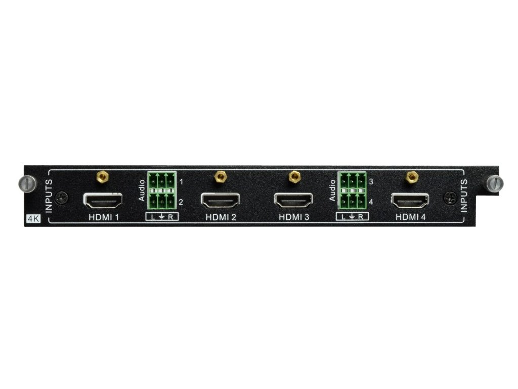 Je profesionální vstupní karta určená pro použití modulárních multiformátových šasi řady MMU xx (např. MMU-8A, MMU-1616..).Nabízí 4x HDMI vstupy s podporou rozlišení až 4K UHD a integrovaným de-embedderem audia, který umožňuje oddělit signál od HDMI a vyvést jej zvlášť pro další zpracování.