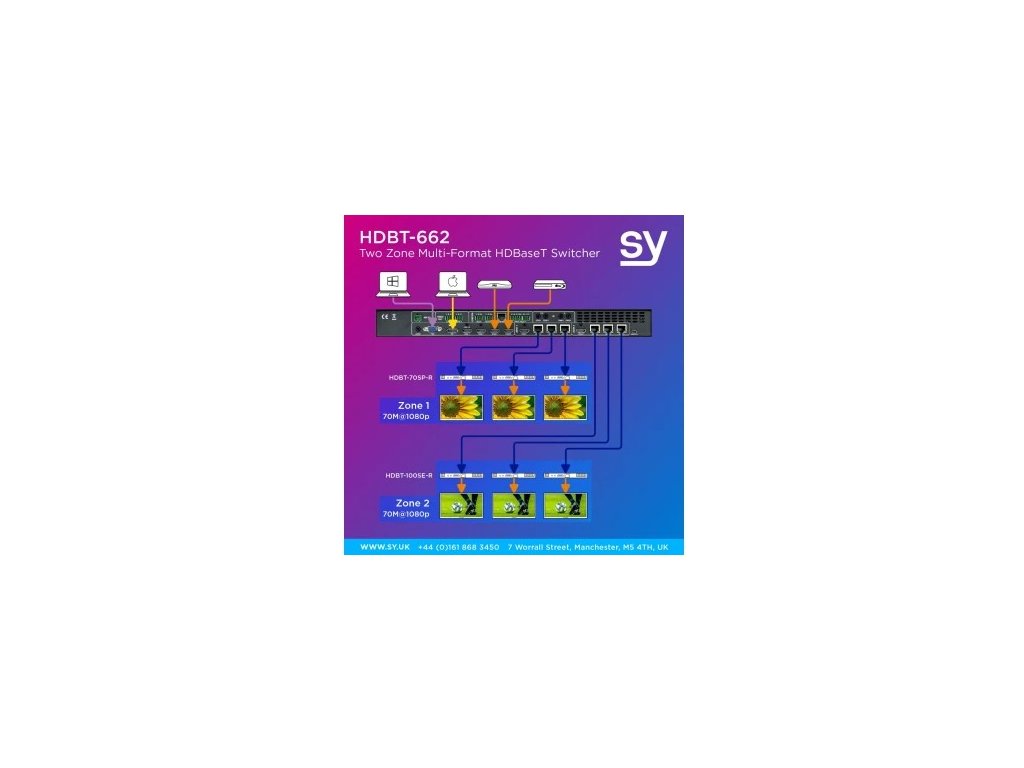 Umožňuje připojit až 6 zdrojů signálu a směřovat je nezávisle na 8 výstupů. Každý výstup lze ovládat nezávisle, takže do různých místností nebo zón může jít jiný signál.